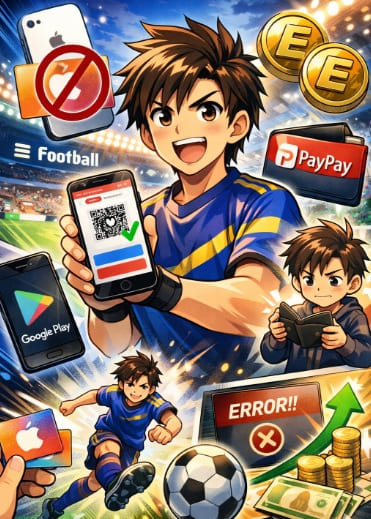 イーフトの課金は、ゲーム内でコインを購入する形ですが、決済処理そのものはAppleまたはGoogleが管理しています。つまり、イーフトは「支払いの受付窓口」であり、実際の支払い方法の選択や管理は、App StoreまたはGoogle Playの役割です。