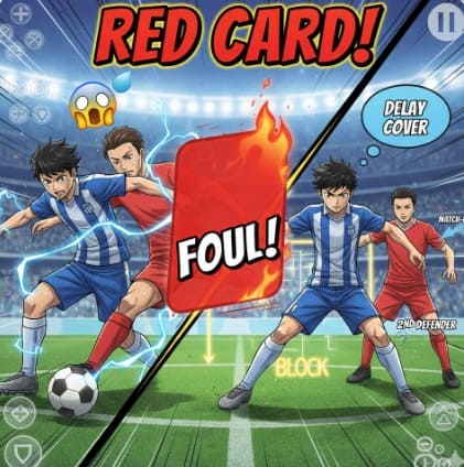 イーフトをプレイしていて、「なぜ今それでレッドカード?」「明らかにボールに行っていたのに退場になった」と感じた経験がある人は少なくありません。特にランクマッチやイベント戦では、レッドカード1枚で試合の流れが大きく変わり、強いストレスを感じやすい要素です。
