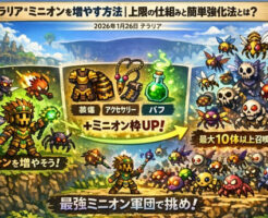 はじめに テラリアでサモナー系のプレイをしていると、「ミニオンが思ったより少ない」「動画みたいに大量に出せない」と感じることがあります。 しかしそれは操作ミスではなく、ミニオンの仕組みを正しく理解していないだけというケー […]