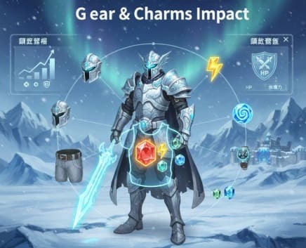 領主装備には 6種類の装備スロット が存在し、それぞれが特定兵種に効果を付与します。セットボーナスが付与されるためバランス強化が肝要です。参考:WhiteOutSurvival Wiki