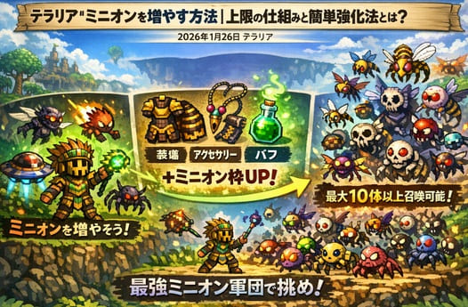 テラリアでサモナー系のプレイをしていると、「ミニオンが思ったより少ない」「動画みたいに大量に出せない」と感じることがあります。