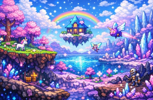 聖域とは、テラリアのハードモード突入後に出現する特別なバイオームです。正式には「ハロウ」と呼ばれ、ピンクや水色を基調とした幻想的な景観が特徴です。